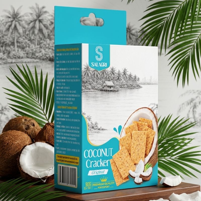 From the sun-drenched coconut groves of Vietnam’s Mekong Delta and coastal plains, SALAGRI proudly presents our newest creation: Vietnamese Baked Coconut Crackers — an authentic taste of Vietnam’s rich coastal heritage, crafted with care and tradition.